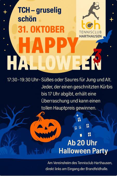 Dieses Jahr findet beim TCH eine Halloween-Party vom feinsten statt. Alle sind eingeladen, ob mit oder ohne Verkleidung.